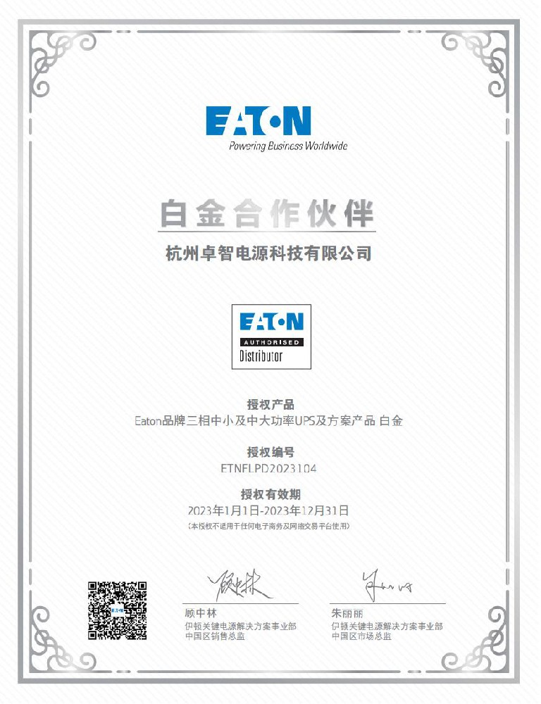 • 伊頓2023中小及中大功率白金授權(quán)