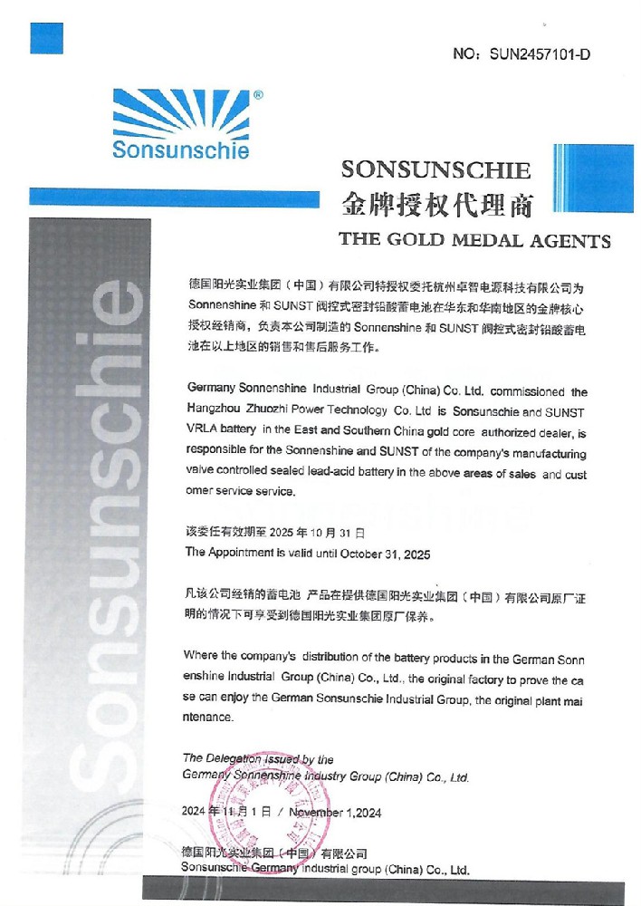• 2025德國陽光實業(yè)授權(quán)書